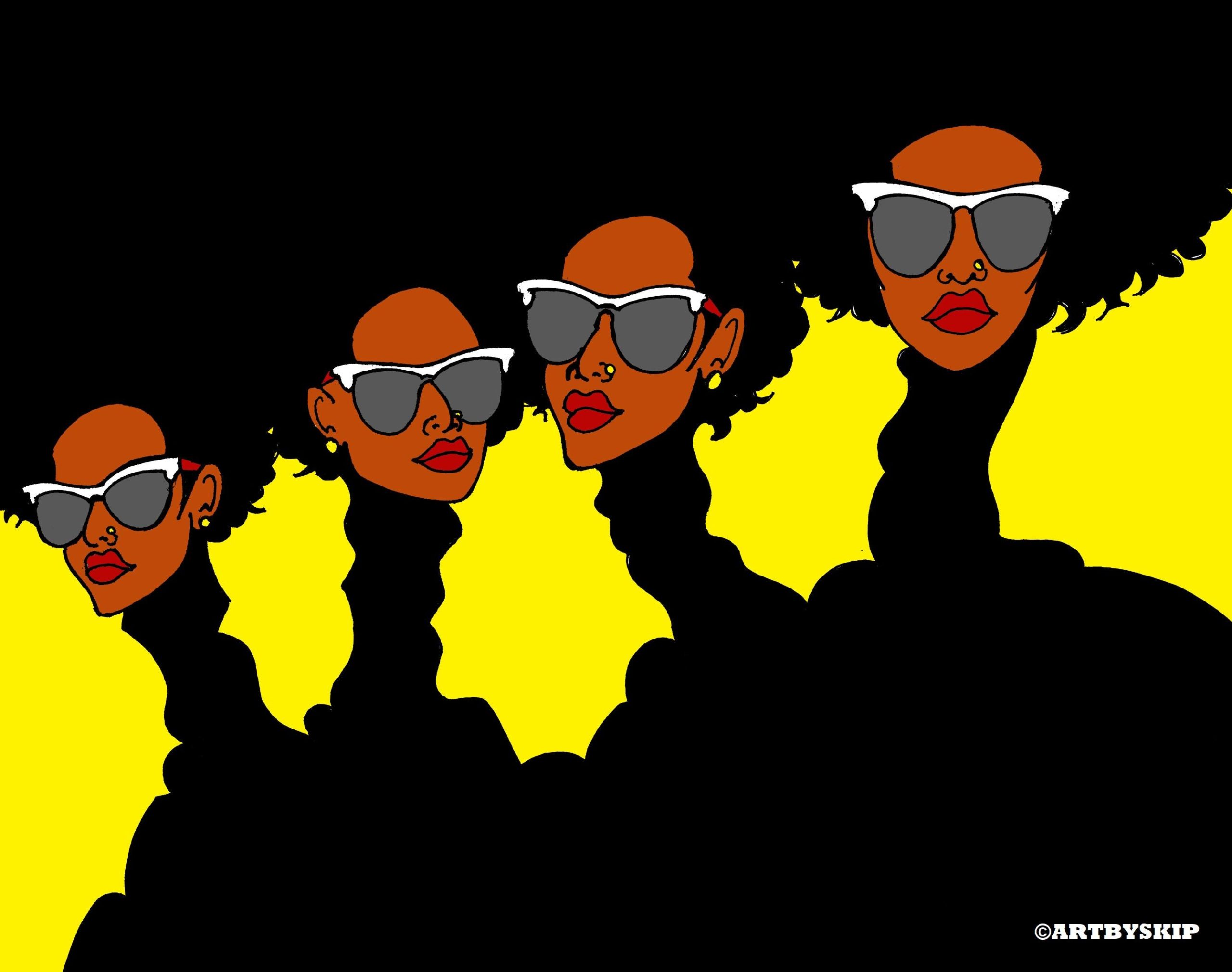 4 GIRLS AFRO AND SHADES POSTER PRINT