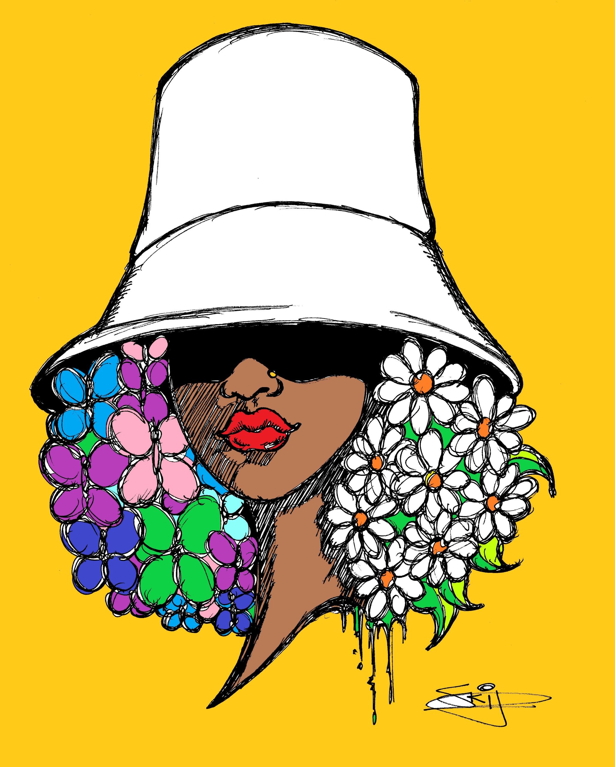 AFRO FLOWERS AND HAT NEW ROLLED CANVAS PRINTS